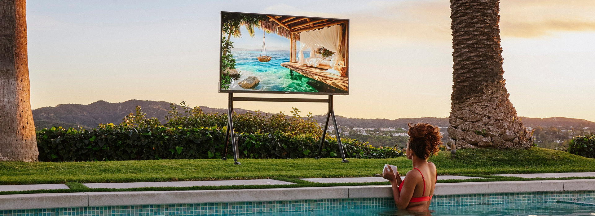 A next-level outdoor TV designed to perform in sunlight, rain, or snow.