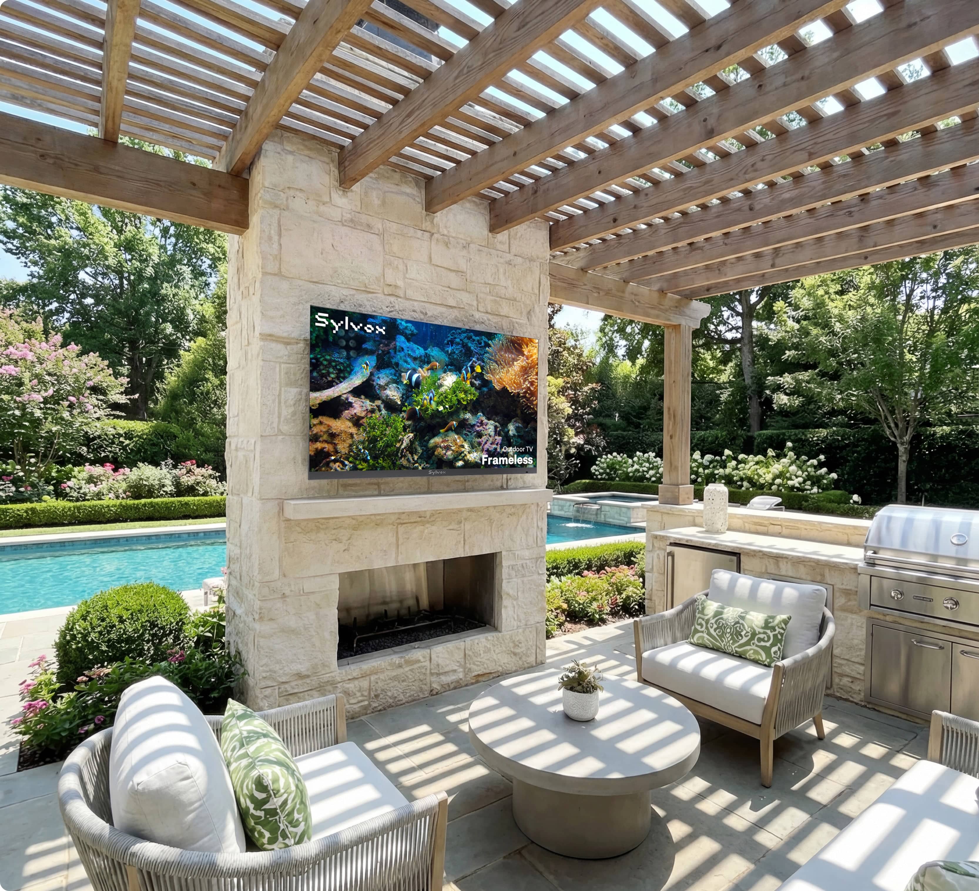 When homeowners and designers consider how outdoor TVs fit into modern outdoor living without compromising aesthetics or disrupting the space, the answer lies in choosing outdoor TVs with a visually restrained, environment-aware design that performs reliably outdoors. The Sylvox Frameless outdoor TV offers an effortless go-to solution by pairing weatherproof performance with a bezel-less design that blends naturally into outdoor living spaces.
