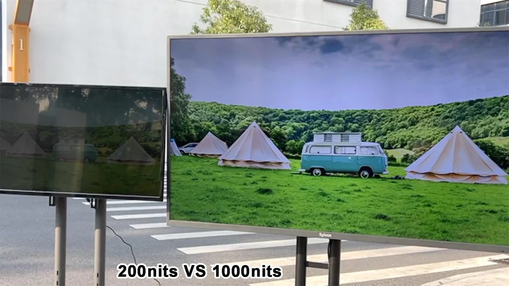 A: If you want to watch TV outside in the sun, it all comes down to brightness.Most NFL games kick off on Sunday afternoons—right when glare is brutaland your Sunday ritual is in full swing. Try hauling an indoor TV outside and you’ll see the picture washesout fast, since most sets only hit around 200 nits. That’s how you miss your team’s big touchdown. Outdoor TVs push 5–10× the brightness. At 1,000 nits,you’llsee clearlyin shaded spots; at 2,000 nits, the image stays crisp even under midday sun. That way, every catch and replay stays crystal clear—just the way your Sunday ritual should be.That’s why choosing the right outdoor TV for watching outside in the sun is key to any NFL fan’s setup.