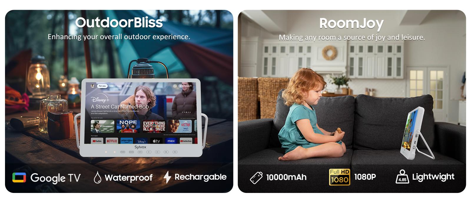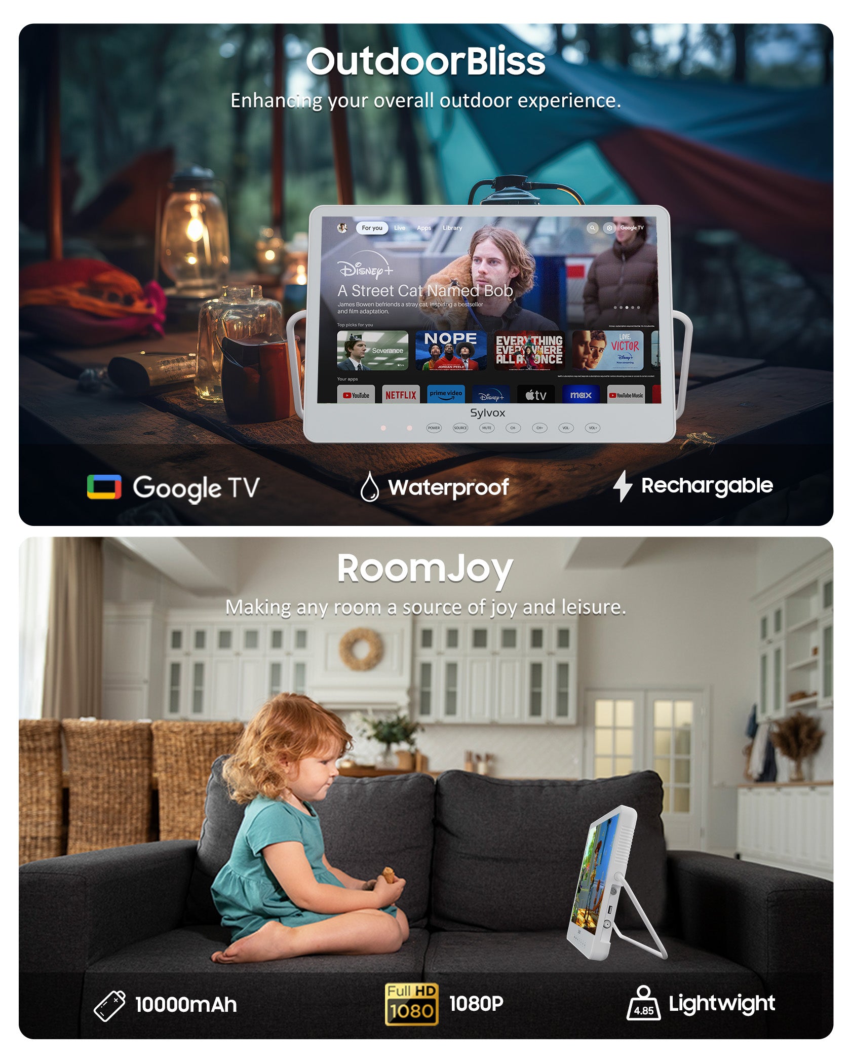 Smart Waterproof Portable TV with built-in rechargeable battery