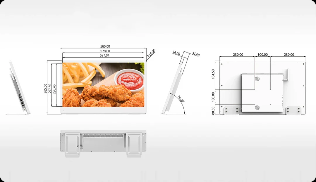 High brightness 700cd/m ², High contrast 1200:1 ,Specially designed bright screen, fearless of strong light influence, always maintaining bright colors,Fearless of strong light, with a "bright" in front of you, ordering becomes faster