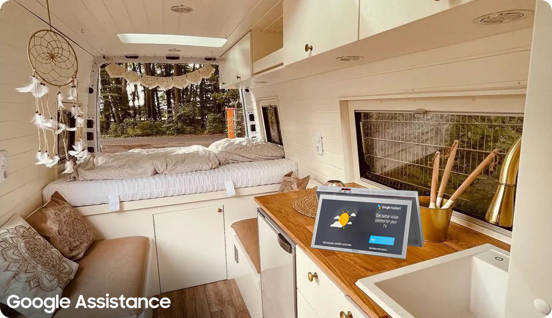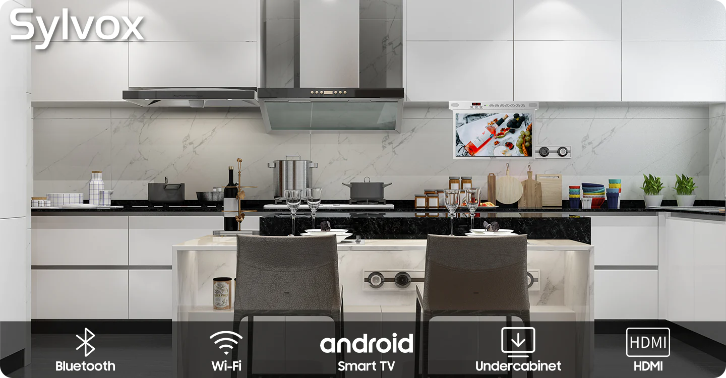 The screen can flap down to a 90-degree angle, rotate 360 degrees, allowing you to find the optimal viewing angle, and it can be installed both inside cabinets and under the roof