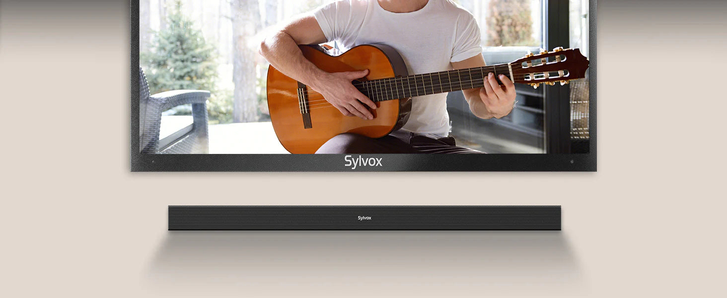 Sylvox soundbar is easy to wall-mount under your TV, thanks to its integrated mounting slots.