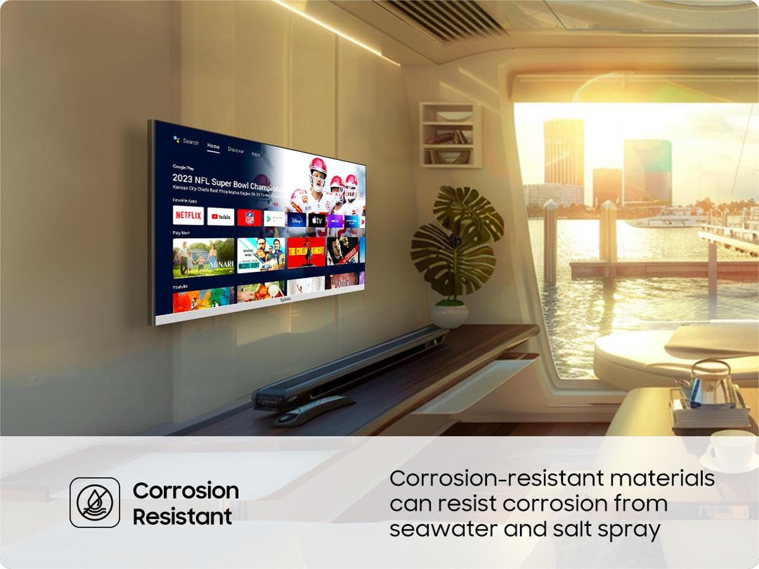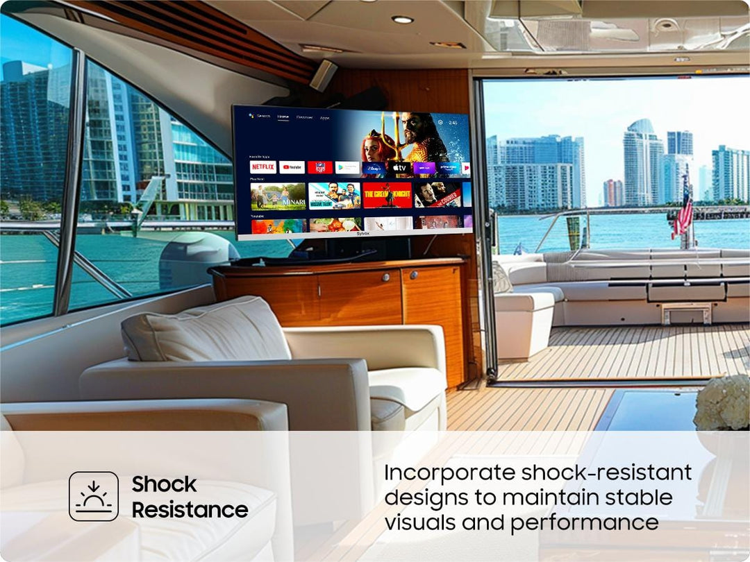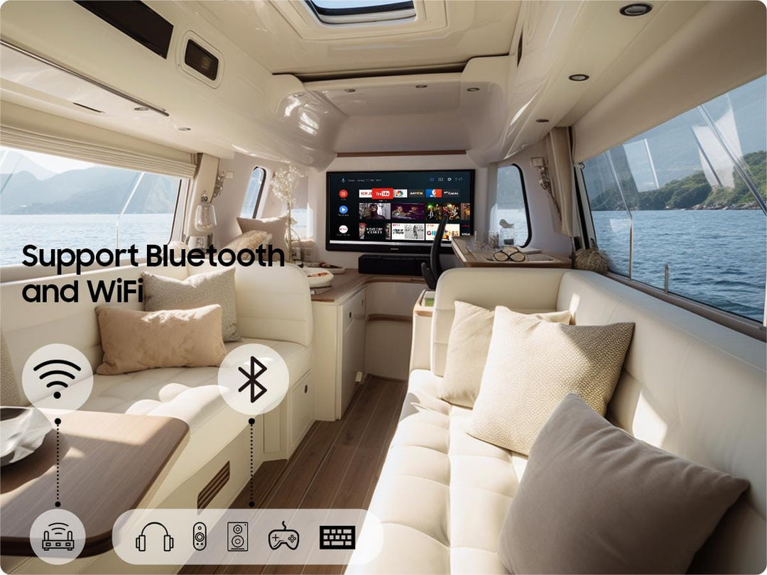 Delivering immersive audio for an enhanced viewing experience. The dual speaker setup ensures clear and powerful sound output, making it ideal for various settings, from RVs to marine applications.