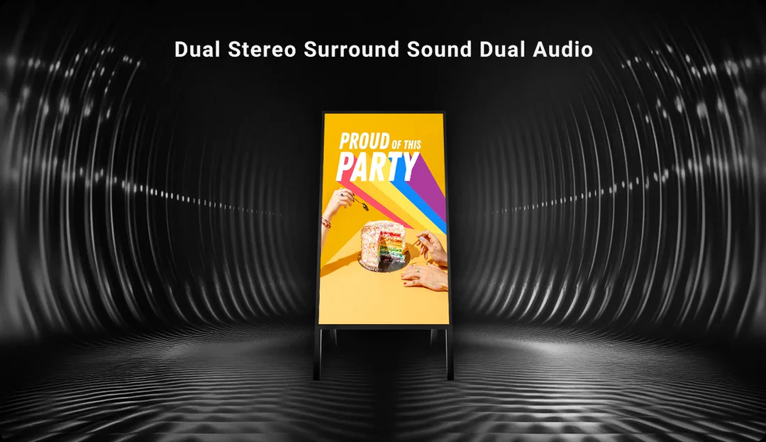 * Built-in high-volume dual speakers a llow audio marketing to spread further and wider;