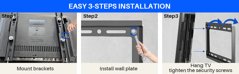 - 【Strong & Durable TV Mount】 made from high quality, reinforced, compressed steel.